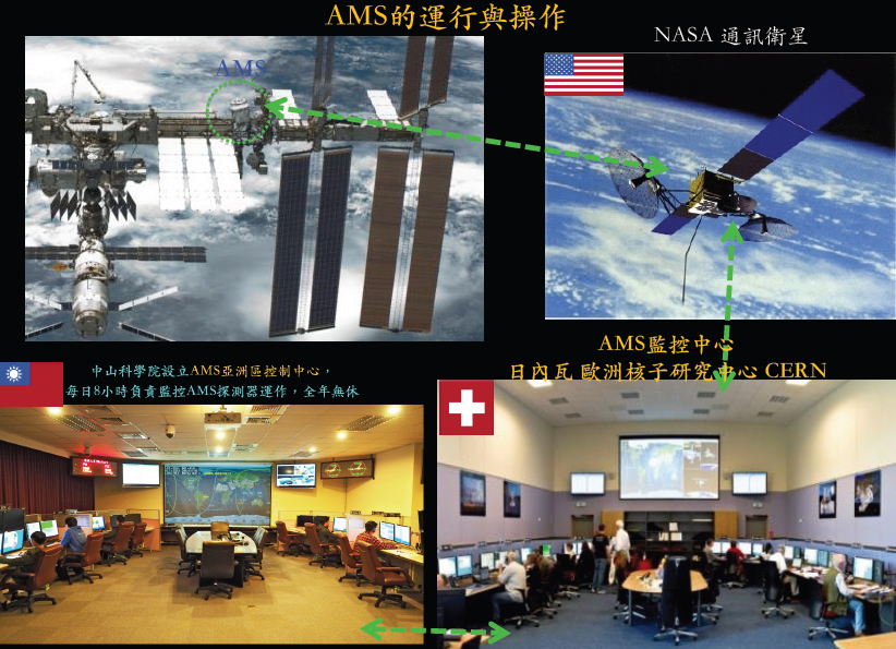 AMS-02已於2011年升空安裝於國際太空站(ISS)上,將所偵測數據透過美國NASA傳送至歐洲粒子研究機構的地面監控中心(CERN POCC)。並於2012年在本院龍園院區建置完成AMS亞洲監控中心(ASIA POCC),正式展開為期長達20年粒子偵測與監控任務。
