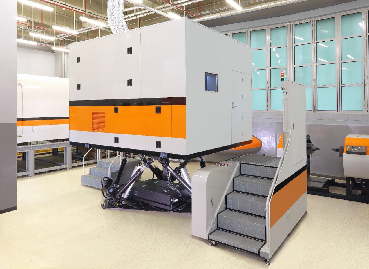列車駕駛模擬機,提供高鐵全線345公里之軌道路線熟悉訓練,並具備異常事件及災害告警處置訓練。