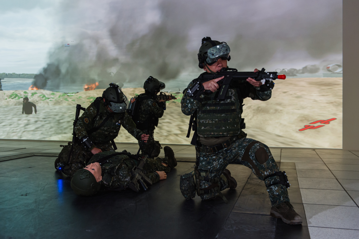 ◆戰術戰傷訓練系統,可模擬戰場環境進行敵火下衛勤救護訓練。